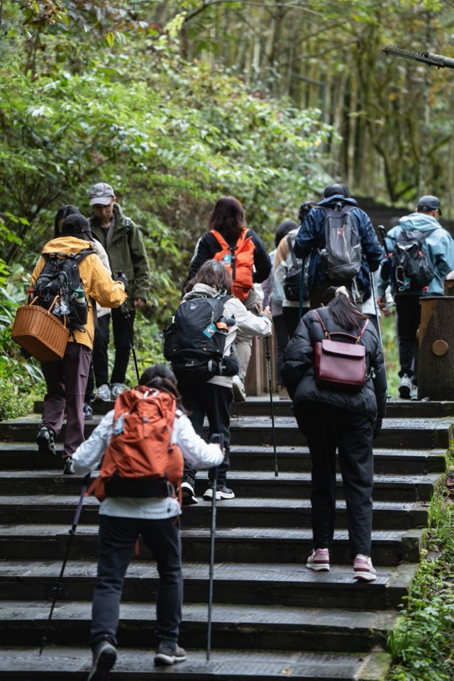 后山“穿林海上春山”徒步挑战别具一格,途经香杉林、鸳鸯池广场等8大特色点位,主打植物科普研学。漫步步道如同走进天然植物博物馆,原生草木繁茂,其中点缀着珍稀植被,游客徒步赏景之余,可辨识草木、探寻自然奥秘,让踏青兼具健身与研学价值。