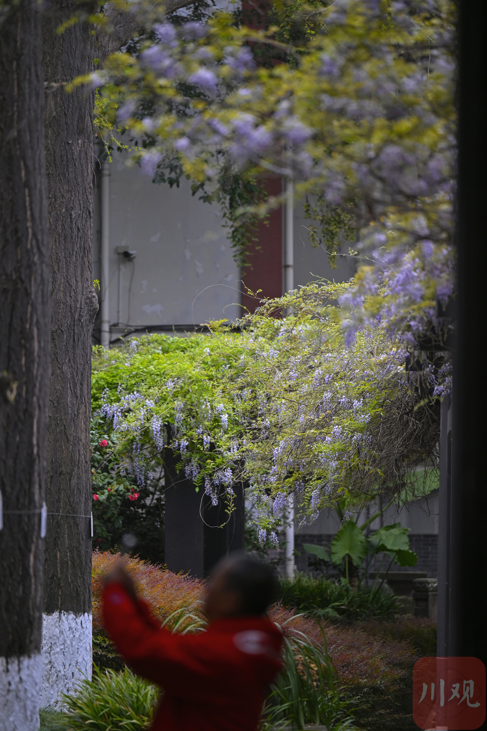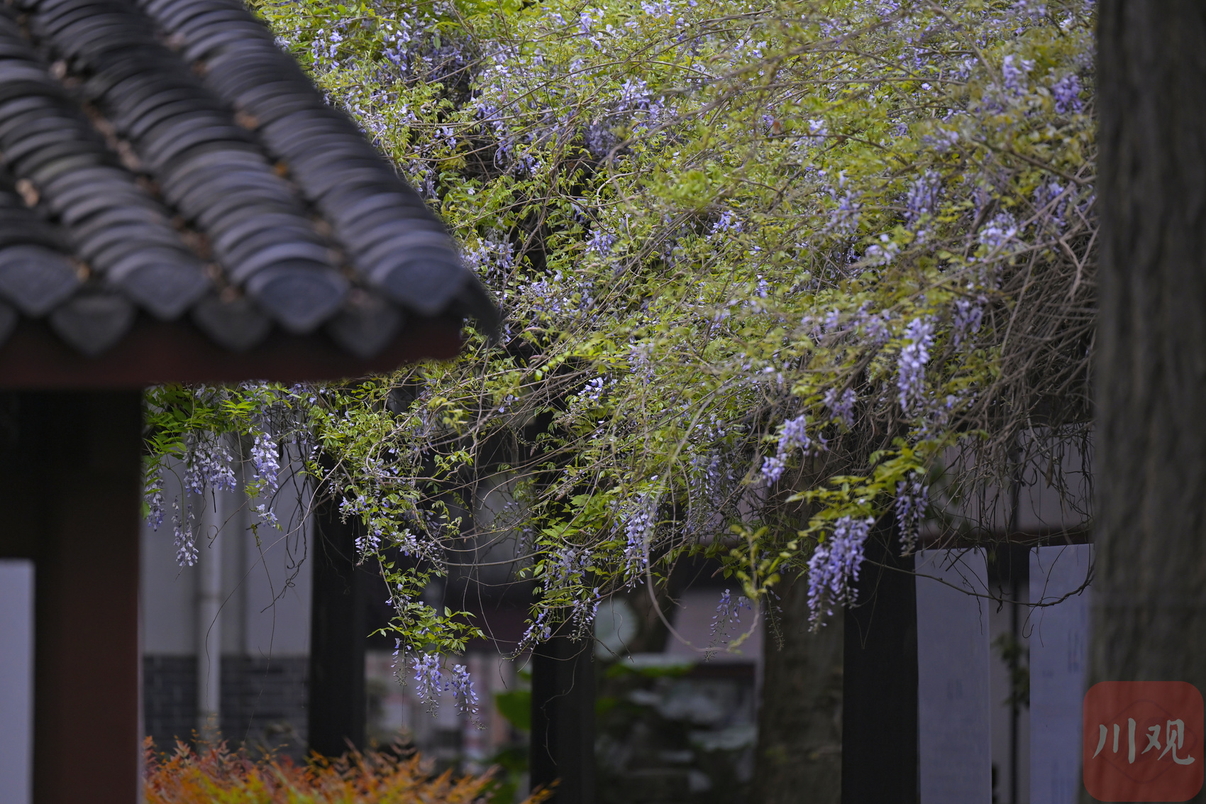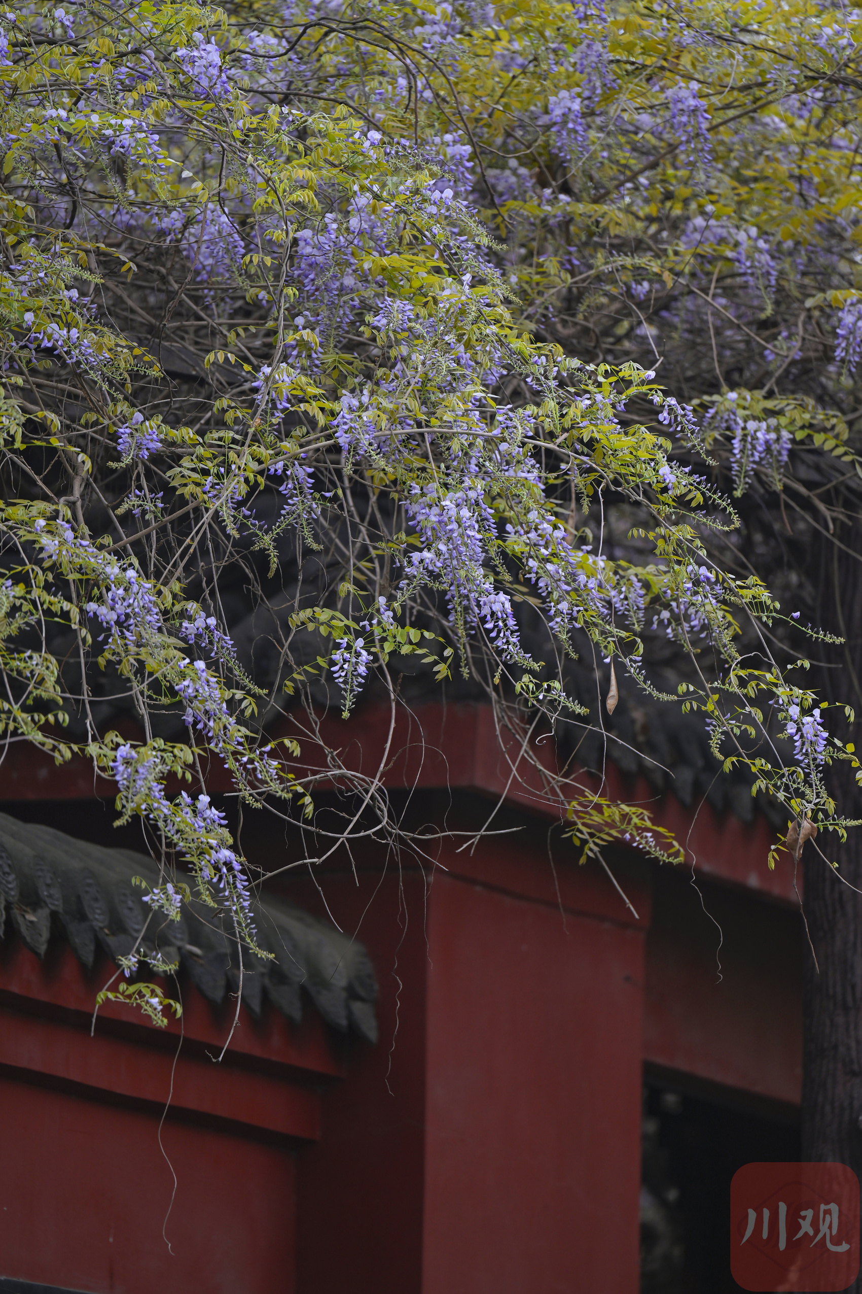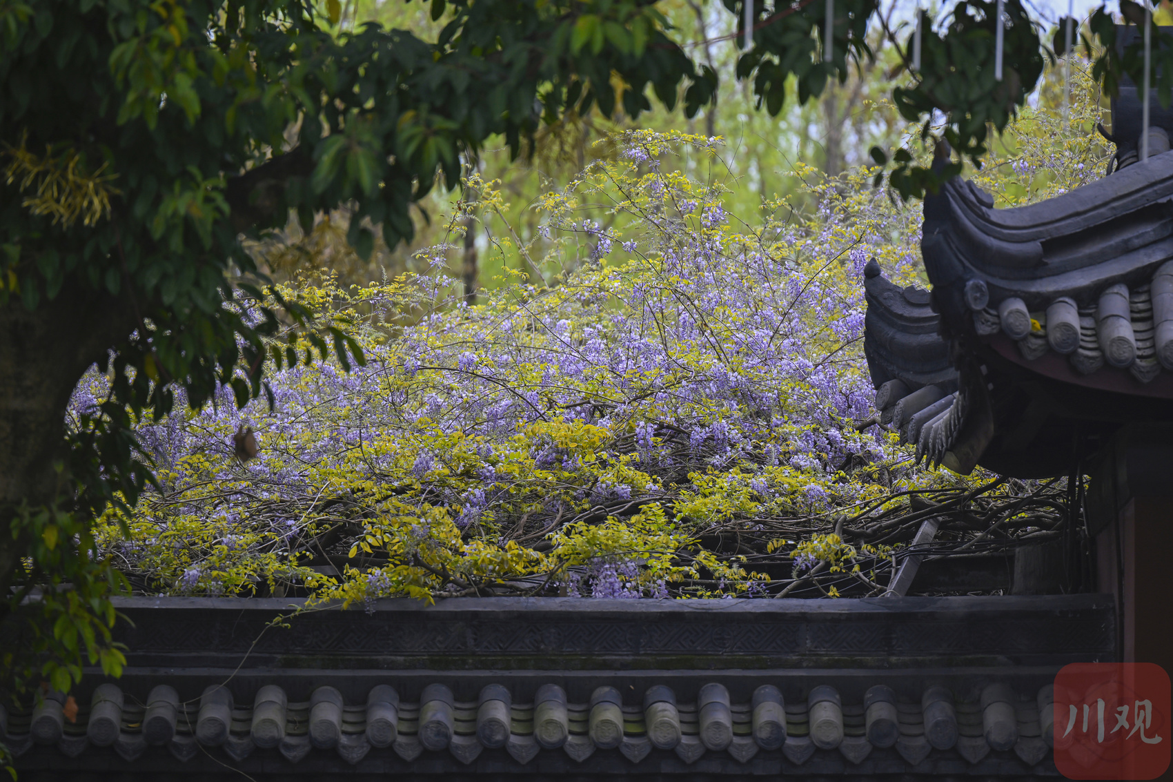 3月18日,位于成都市新都区桂湖公园内的两株百年紫藤古树绽放出淡紫色花串,即将迎来最佳赏花期。其中一株被誉为“中国藤王”的紫藤,枝叶繁茂如瀑,倾覆花架,形成“满园紫气”的春日奇观,吸引众多游客驻足流连。