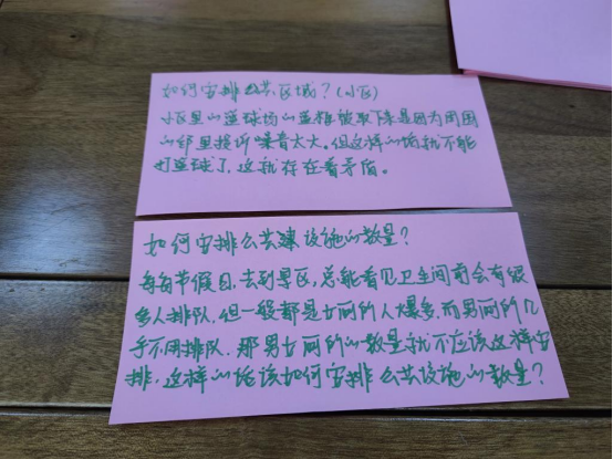 图为“花蕊观察团”议事活动中,老师记录下孩子们对基层治理产生的思考。