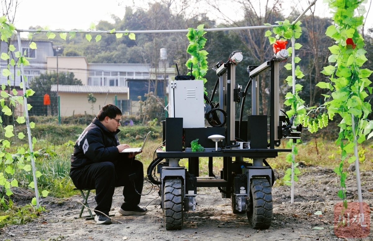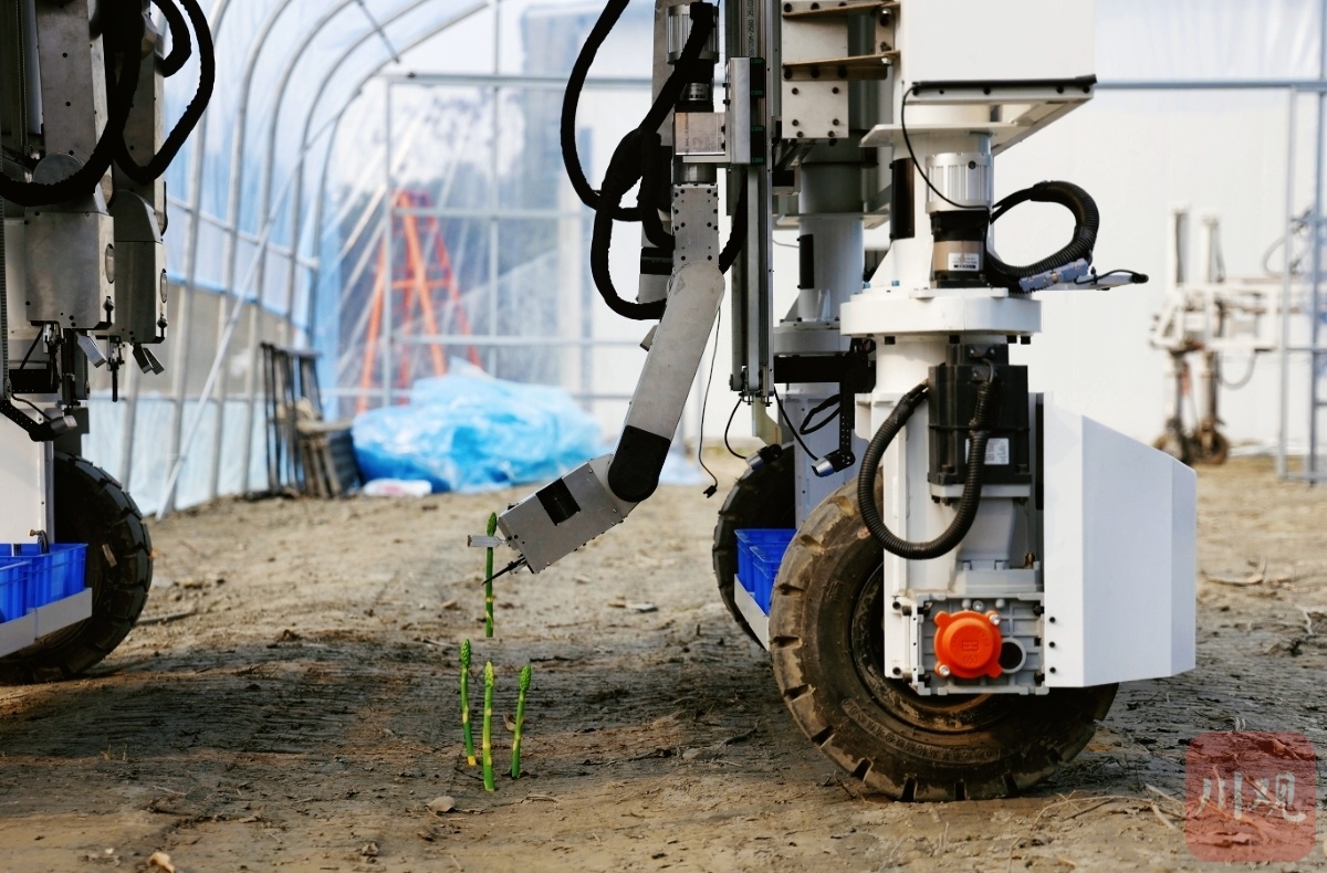 芦笋采摘机器人正在工作。