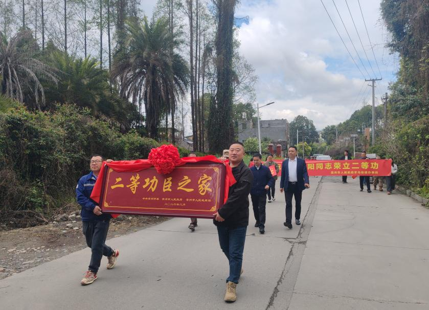 3月17日,成都崇州市人武部联合市退役军人局及相关镇(街道)组建送喜报慰问组,先后前往荣立二等功的现役军人王思阳家庭和荣立三等功的现役军人陈朝阳家庭,分别为其送上立功喜报、荣誉牌匾,以庄重仪式定格荣耀时刻,让“一人立功、全家光荣”的浓厚氛围传遍街巷乡邻。