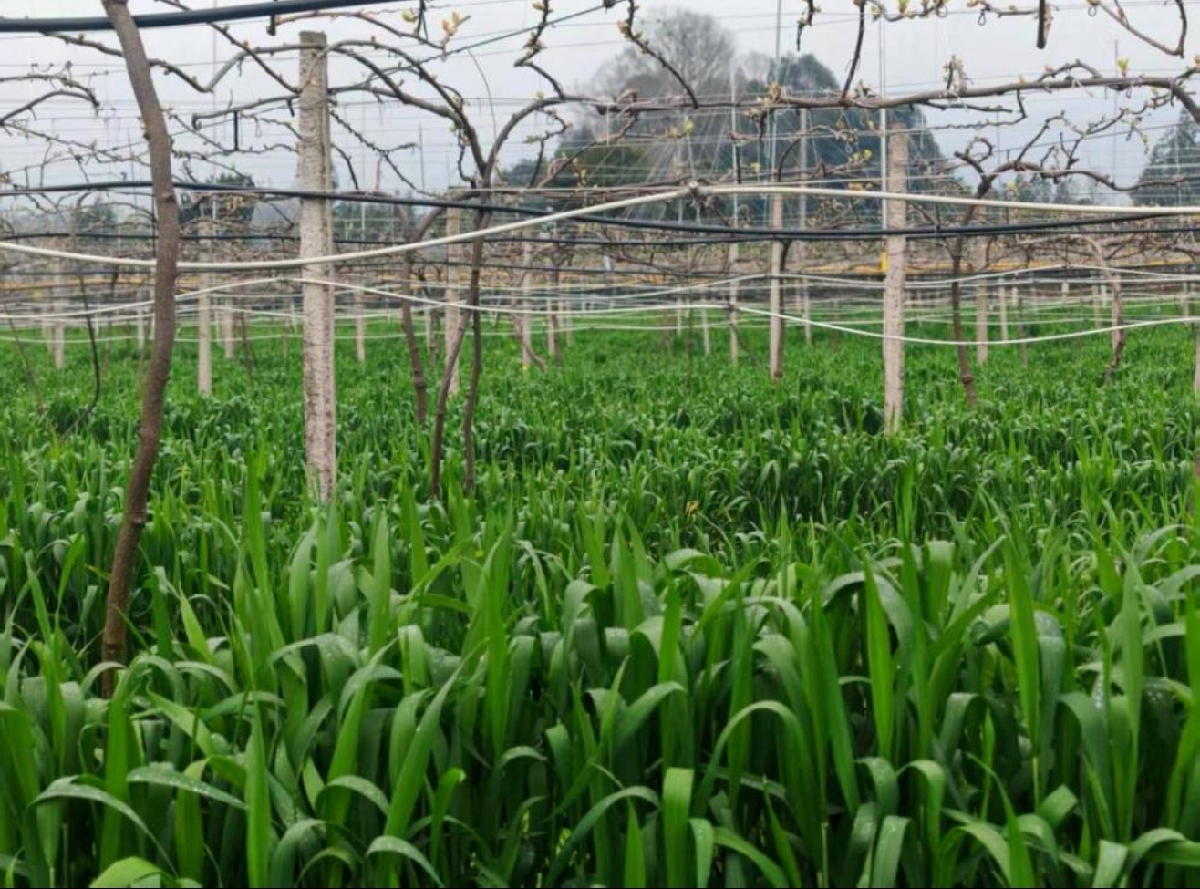 同时,该模式为果园构建了稳定的微气候环境。小麦作为矮秆密植作物,通过地表覆盖降低了地表温度,减少了水分蒸发。麦收后的秸秆覆盖层更相当于“隔热垫”,为浅根系的猕猴桃在盛夏提供了适宜的根际温湿度环境。此外,小麦生长过程中可吸收行间积水,对预防根腐病等病害发挥了积极作用。