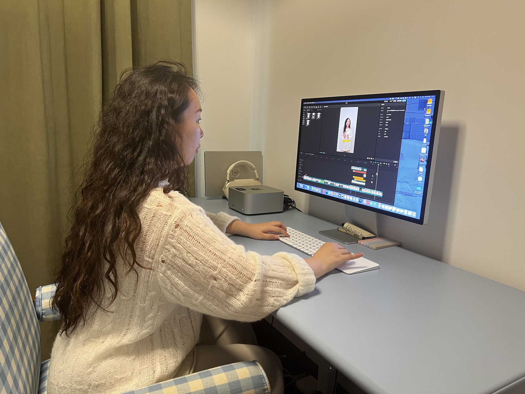 先左转,再右转,到楼下按房号……顺着陈宇骄的指引,记者来到了她居住的小区。推门而入,宽敞的房间里,没有太多杂物,一间不太大的房间被改造成工作室,这便是她一人公司的办公场地。