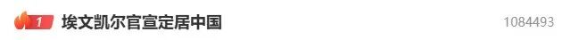 3月16日,“埃文凯尔官宣定居中国”话题冲上热搜首位。