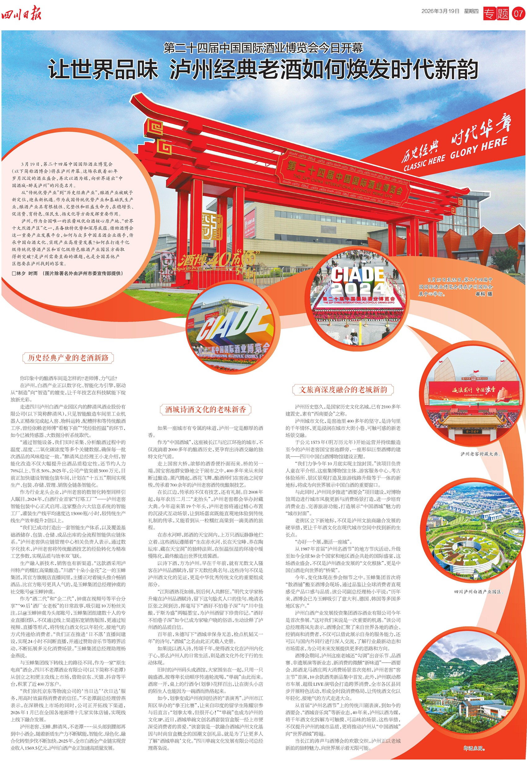 3月19日,第二十四届中国国际酒业博览会(以下简称酒博会)将在泸州开幕。这场承载着40年岁月沉淀的酒业盛会,再次以酒为媒,向世界递出“中国酒城·醉美泸州”的闪亮名片。