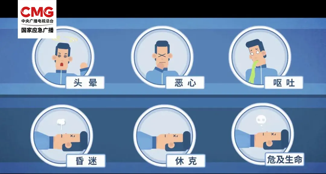 若因燃气未充分燃烧导致一氧化碳中毒,早发觉、早救治非常关键,学会识别以下信号↓