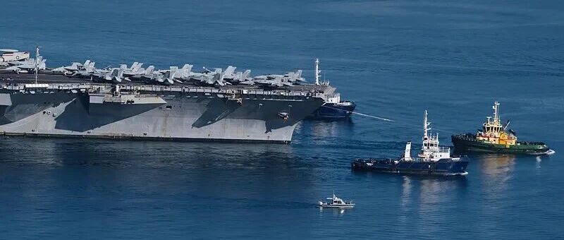 “福特”号为美国最新、全球最大的航空母舰之一,舰上约有5000名人员及70余架军机。目前,“福特”号航母执行海上任务已进入第10个月,它先是从地中海前往拉美参与对委内瑞拉的军事行动,自2月28日美以对伊朗展开军事行动以来,又从加勒比海来到中东,参与对伊朗的军事行动。