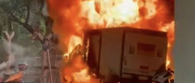 18日,香港消防处方面回应南都N视频记者称,此次火情涉及一辆货车和两辆电动摩托车,消防人员在起火货车上发现两个油缸,相信货车是非法改装而成的流动加油站,因起火原因有可疑,案件已交由香港警方跟进调查。香港警务处方面表示,此次火情中无人受伤,案件暂列为纵火案。