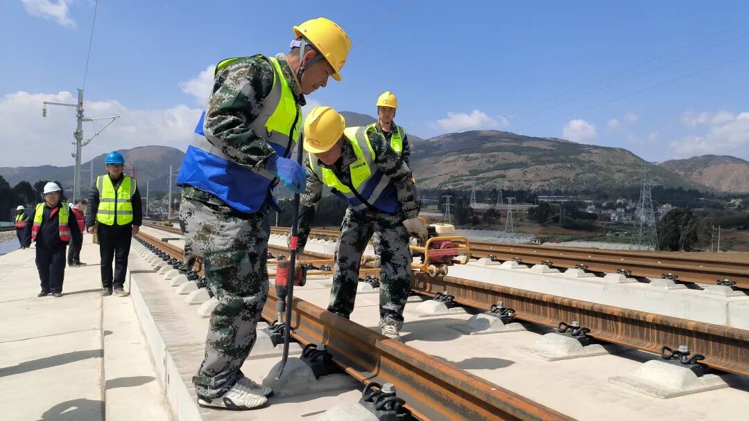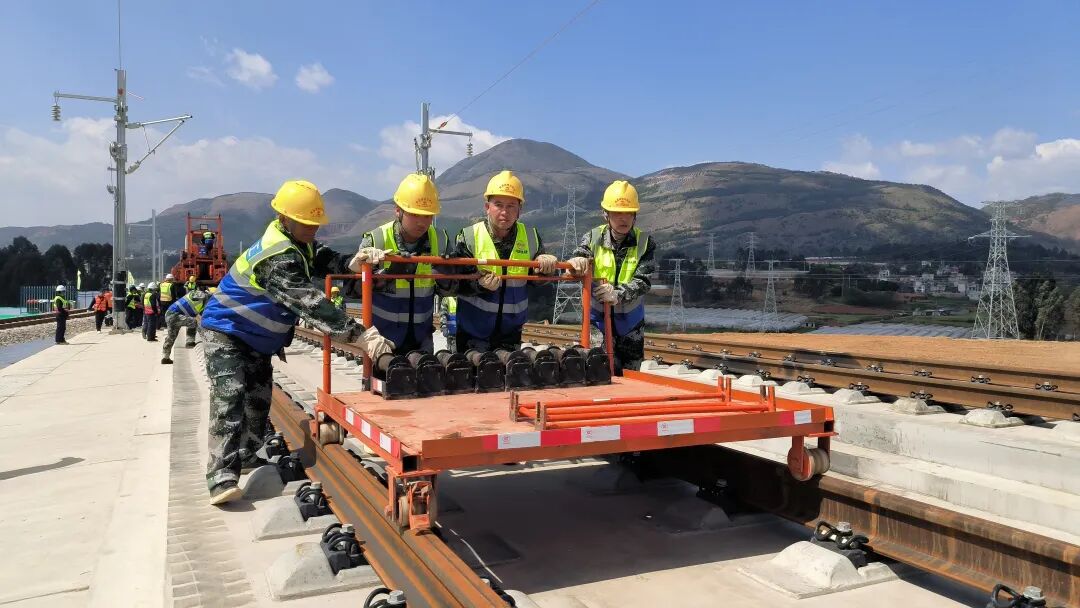 渝昆高铁建设直面世界级工程挑战,线路纵贯云贵高原乌蒙山腹地,地质地貌错综复杂,桥隧比高达87.4%,超10公里的长大隧道多达10座。此次铺轨施工任务,涵盖上下行钢轨铺设846公里、无砟轨道道岔50组、无砟轨道钢轨伸缩调节器16组等重要工程,每一项都是对建设团队技术和毅力的考验。