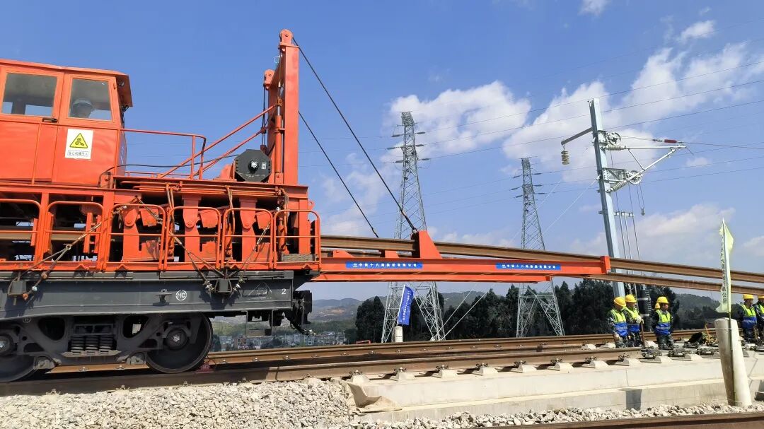 “我们针对渝昆高铁集复杂地质、长大隧道群、30‰连续长大坡道于一体的特点,研发应用了长大坡道铺轨、制动与精调成套技术,并配备先进工装设备与智能监测系统,确保铺轨安全和精度。”中铁十六局渝昆高铁铺轨施工技术负责人张延说道。