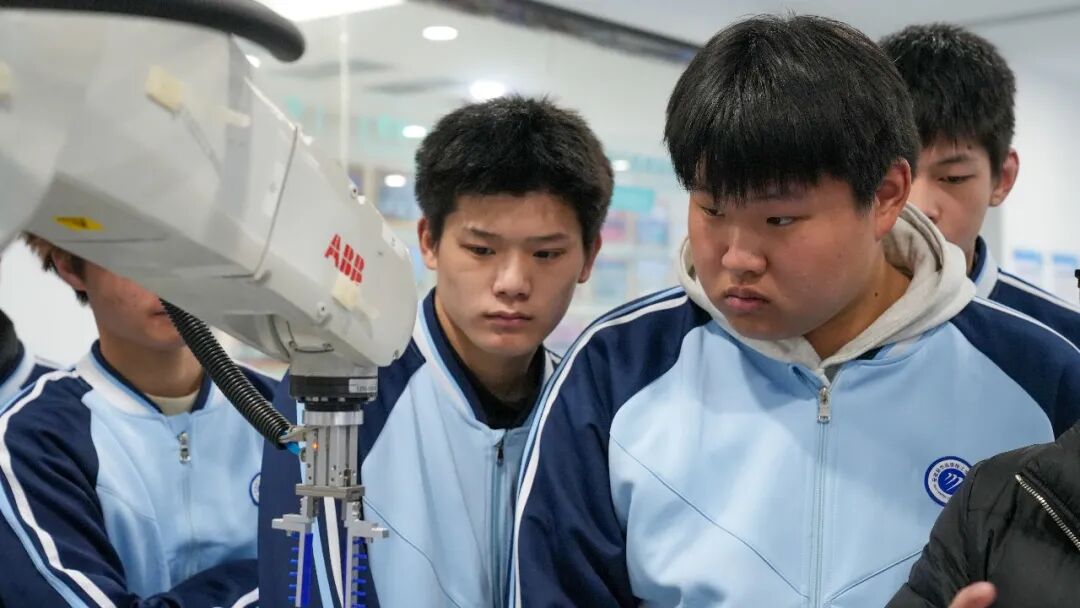 记者走进工业机器人专业课堂,探访这一新兴专业备受年轻人青睐的原因。