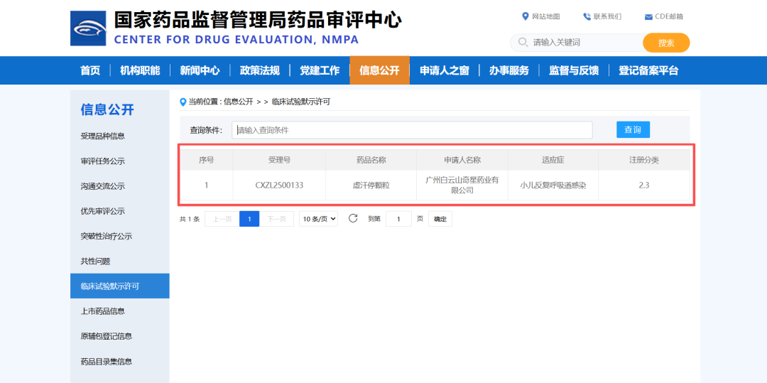 近日,广州白云山奇星药业有限公司(以下简称“白云山奇星”)旗下品种——虚汗停颗粒获得国家药品监督管理局下发的《药物临床试验批准通知书》,批准开展新增“小儿反复呼吸道感染”适应症的临床试验(注册分类2.3类改良型新药)。