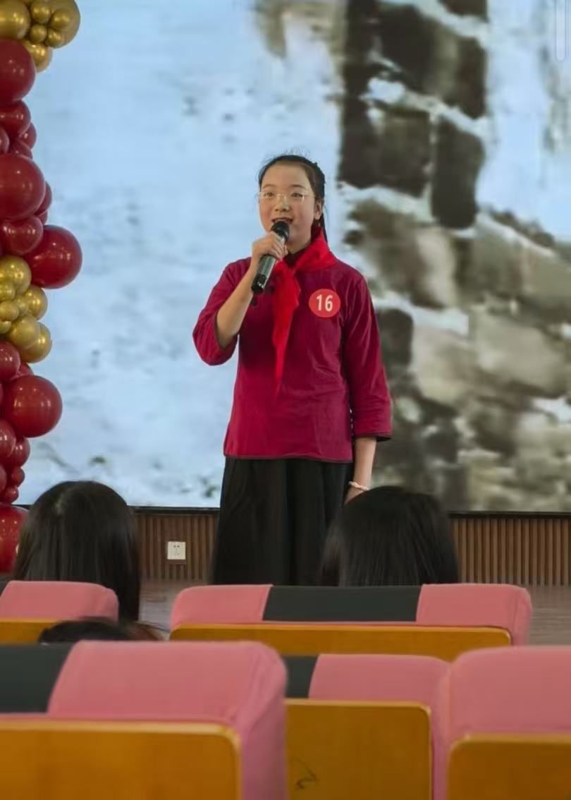 该校红领巾讲解员讲解话红色经典故事。