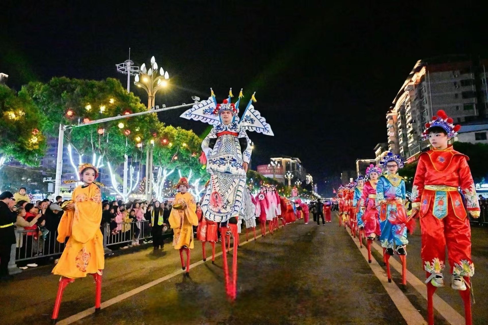 学校开展的踩高跷非遗体验活动。