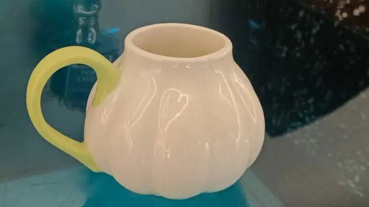 最有意思的文创产品当属与咖啡相关的大蒜咖啡杯,杯子的造型以大蒜为基底,材质为白瓷,除了把手为淡绿色,杯体以白色为基调。工作人员告诉记者,这款大蒜咖啡杯为样品,目前只进行展示,不对外出售,市民要购买的话可能需要等待一段时间。