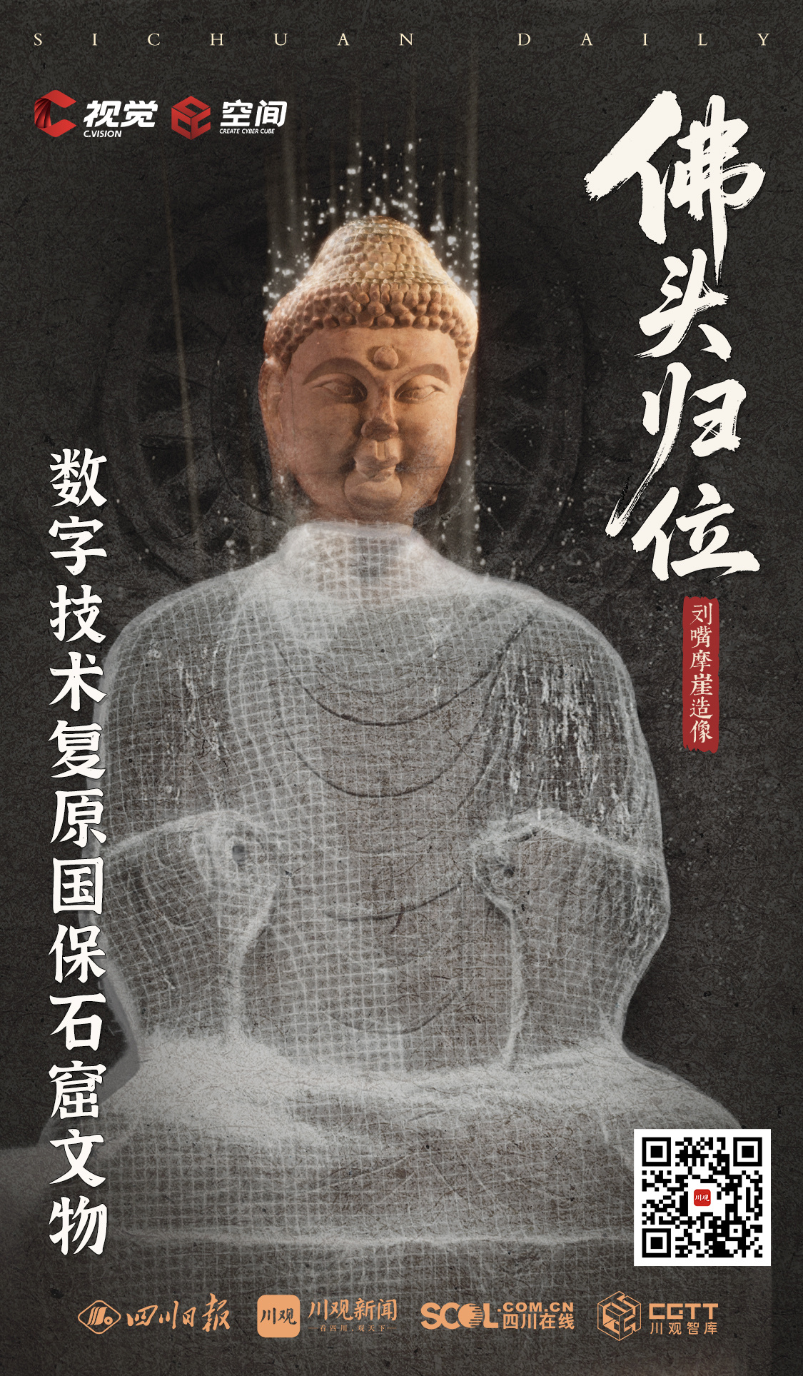 四川眉山丹棱县国保级刘嘴摩崖造像中,一尊释迦牟尼造像因佛首早年被盗,长期处于身首分离状态。近日,川观新闻C空间团队用数字技术将佛首精准“复原”回造像原位,让这处千年石窟恢复原本样貌。