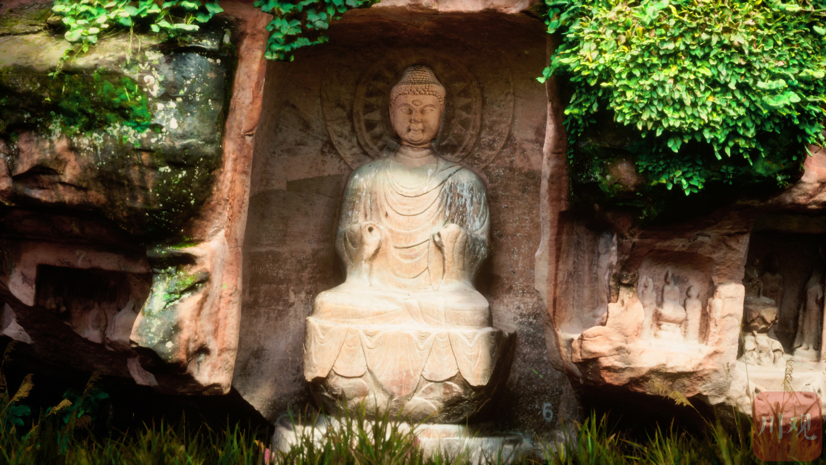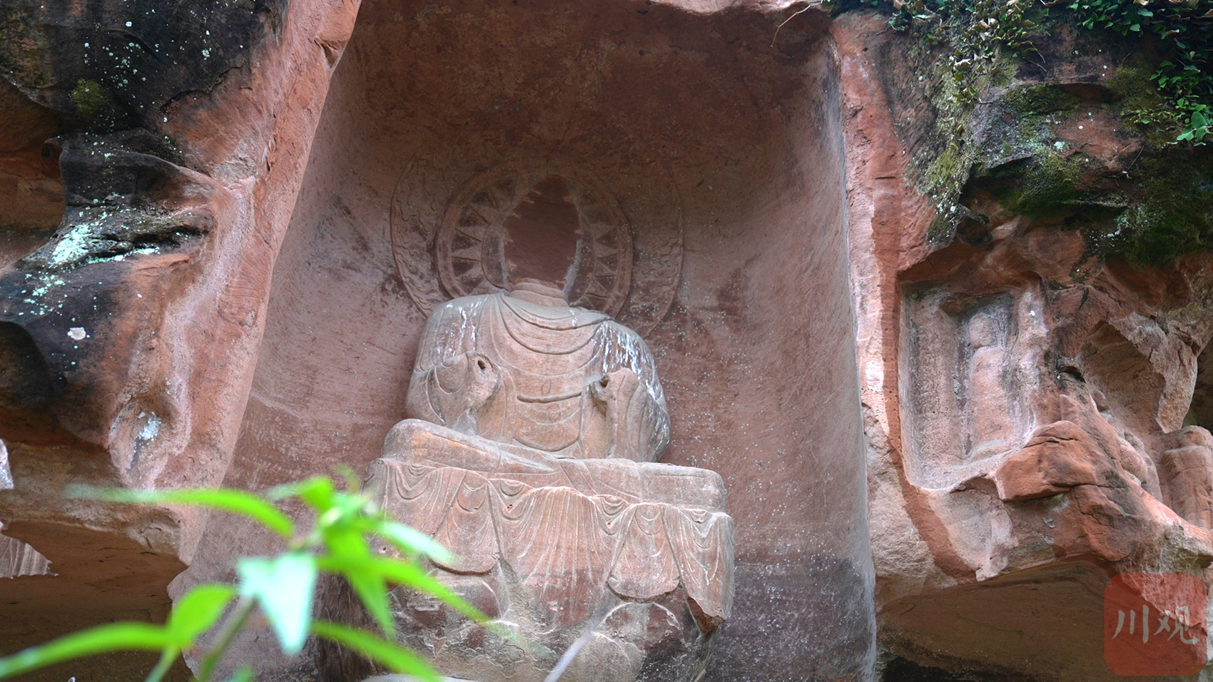 其中6号龛为释迦牟尼群像主龛,是整个造像群的核心。多年前,这尊主佛佛首被盗,后被警方追回,存放于丹棱县文物保护库房。受文物保护规范、物理修复工艺等限制,无法将佛首与佛身做实体拼接、严丝合缝复原。