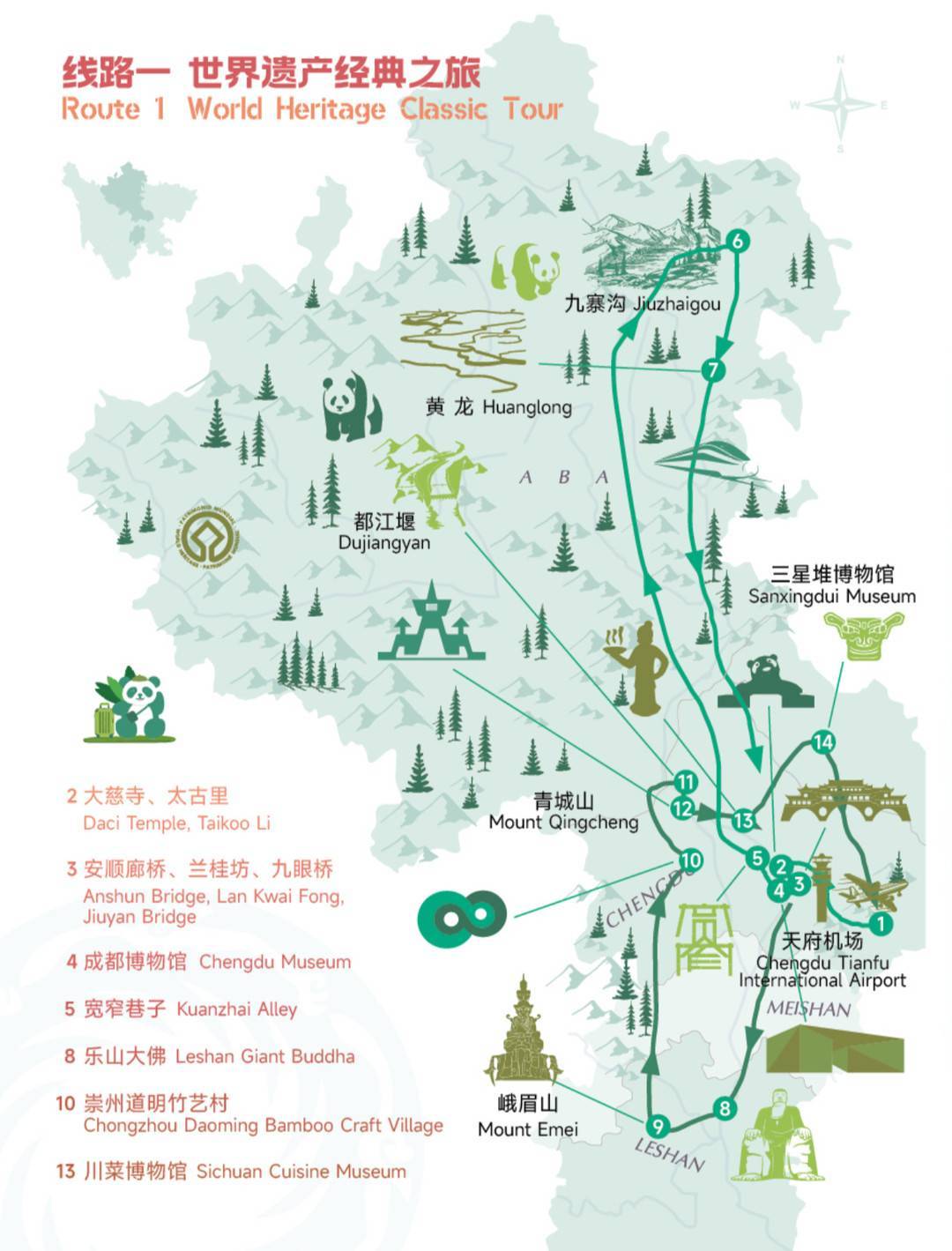 线路囊括了:世界遗产经典之旅(串联九寨、黄龙、青城山-都江堰)、“萌宠大熊猫”生态之旅、冰雪奇缘之旅与冬日温暖阳光之旅等季节性主题产品。同时,针对年轻客群与影迷,还特别推出了《哪吒之魔童闹海》《黑神话:悟空》打卡之旅以及极具都市烟火气的“烟火成都CITY WALK”。此外,行走318国道·寻觅香格里拉、“双城记”巴蜀探秘之旅和“味觉四川”美食之旅,则分别从公路文化、巴蜀历史与舌尖风味等角度,展现了四川的多重魅力。