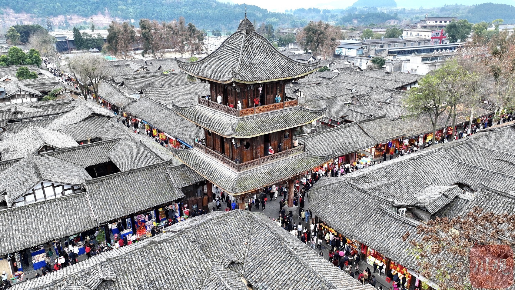 阆中古城中天楼游人如织。