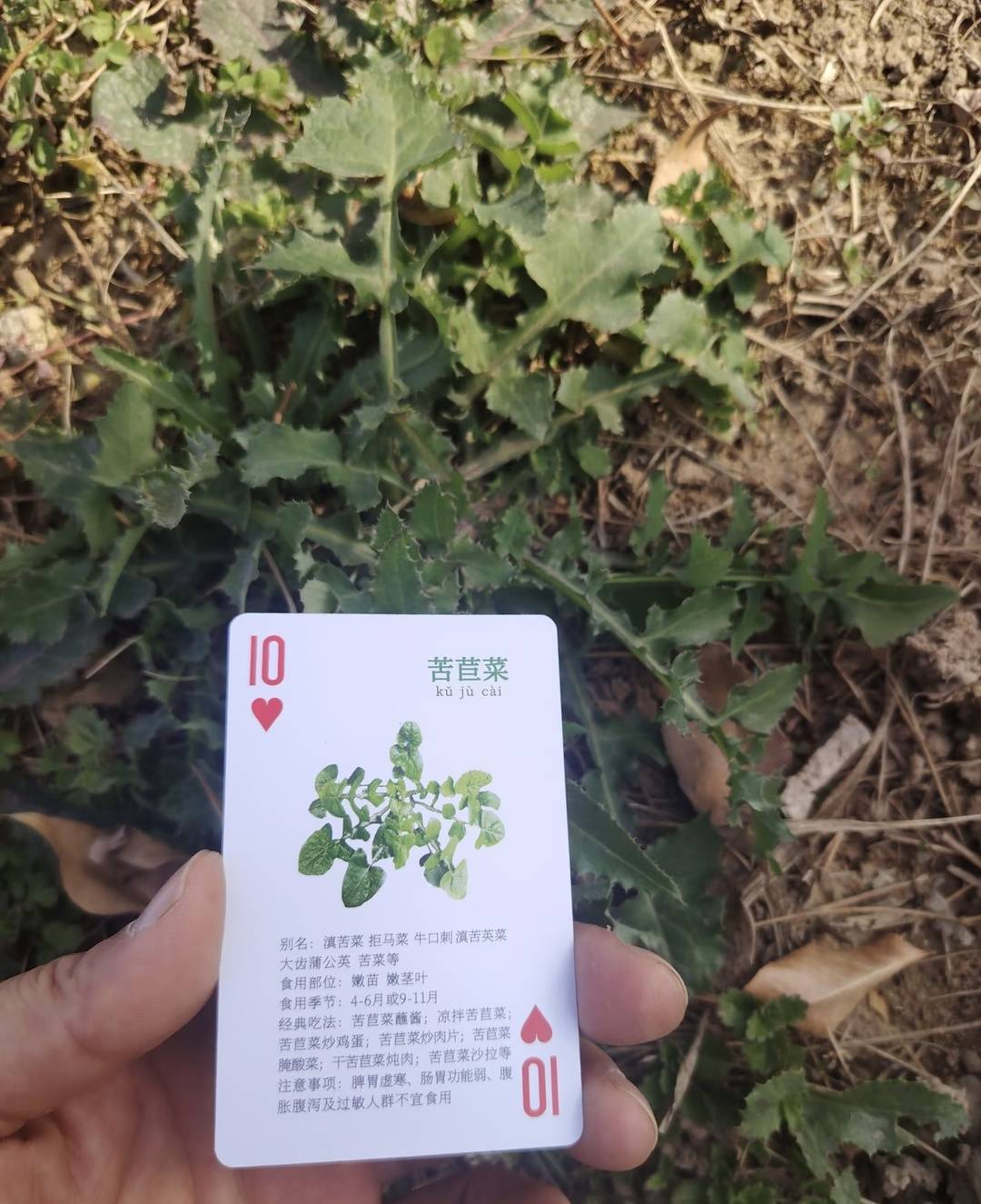 为了应对这一风险,市场上甚至出现了一种“野菜扑克”。这副扑克牌汇编了108种南北常见的野菜类型,牌面上不仅有图形和名称,还详细标注了食用部位、食用季节、经典吃法以及注意事项。