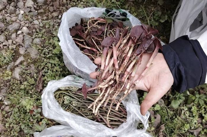 展示挖野菜挖到的折耳根(受访者供图)