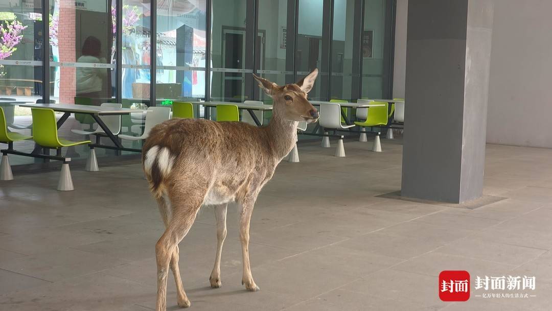 梅花鹿呦呦在食堂闲逛(伍勇 摄)