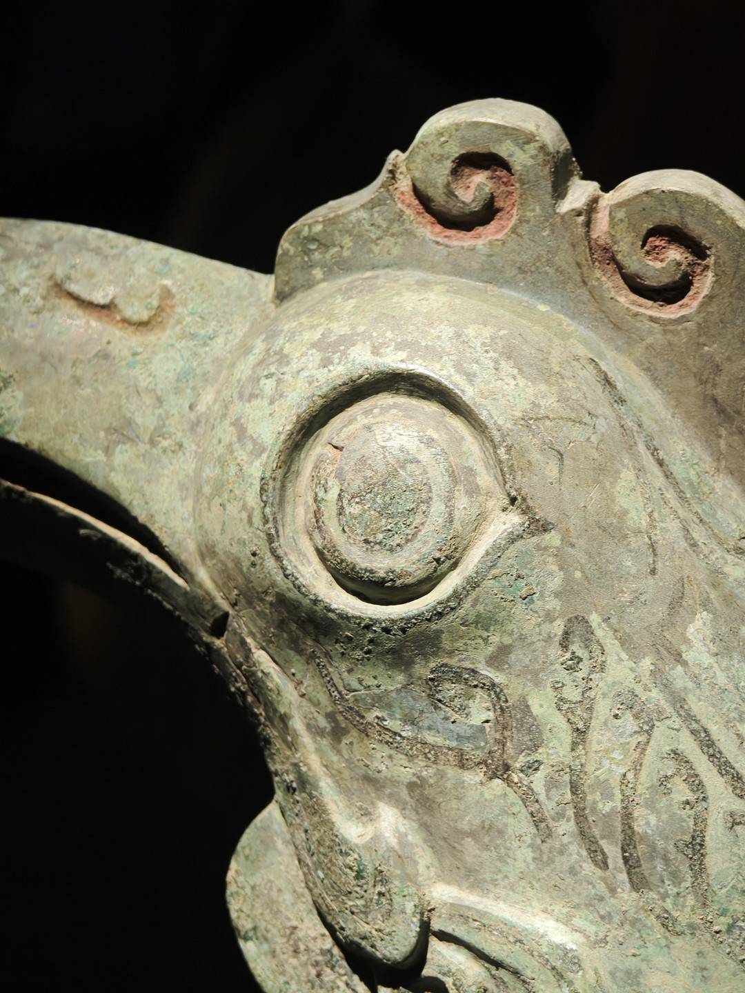 这样的彩绘行为并不是古蜀文明中独有的表达,但是三星堆和金沙遗址的彩绘,依旧具有独特之处。“在容器的细密纹饰上填彩,在中原的二里岗时期就已经出现了,并且一直延续到了春秋时期。”刘百舸说,“但是用髹漆彩绘的方式来做主体性的装饰,比如说给三星堆青铜凤鸟绘制羽毛、眼睛这样的行为,多见于战国以后,以秦汉时期的青铜器为主,与古蜀文明时期年代跨度相当大,在同时期中原或者是长江中游地区的青铜器上,目前尚未发现类似案例。”在他看来,这可以理解为古蜀文明的特性之一。