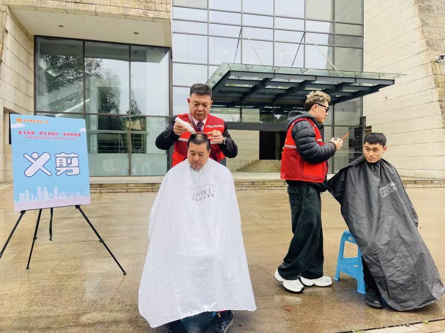 一旁的义剪区同样暖意融融。金牛工匠戴雪巍以一名普通职工志愿者的身份,手持理发剪,娴熟地为保安员们打理发型。作为辖区企业推荐的技术能手,他将精益求精的工匠精神融入志愿服务。“平时在店里服务,今天在活动现场服务,感觉完全不同。” 戴雪巍一边修剪一边说道,“保安员兄弟们守护着我们,今天能用我的手艺为他们做点事,让他们精精神神地上岗,我觉得特别有意义。工会搭建了这个平台,让我们工匠也能为身边的新就业群体出份力。”