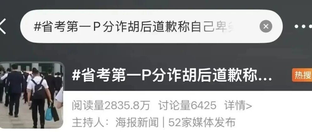 近日,“省考第一P分诈胡”相关话题冲上热搜第一,引发关注。
