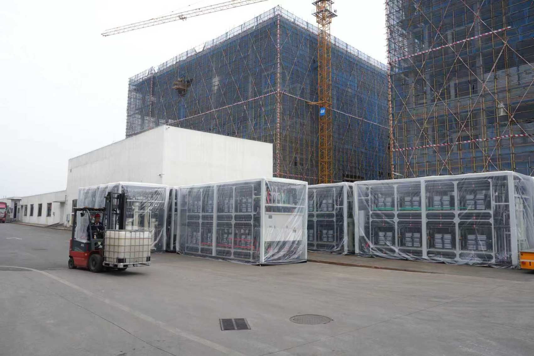 四川伟力得能源股份有限公司生产的全钒液流电池功率单元准备交付。(受访者供图)