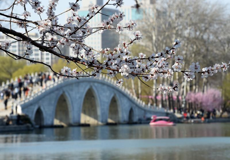 春和景明,北京玉渊潭公园春花争艳,春意盎然,吸引众多游客前来踏青赏花。