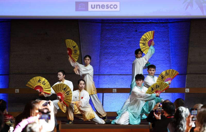 当地时间3月18日,首个“国际太极拳日”即将到来之际,以“健康生活,太极同行”为主题的庆祝活动在法国巴黎联合国教科文组织总部举行。来自中法两国的太极拳习练者同台献艺,展现太极拳的独特魅力与深厚内涵,向世界传播中华优秀传统文化和科学健康的生活方式。