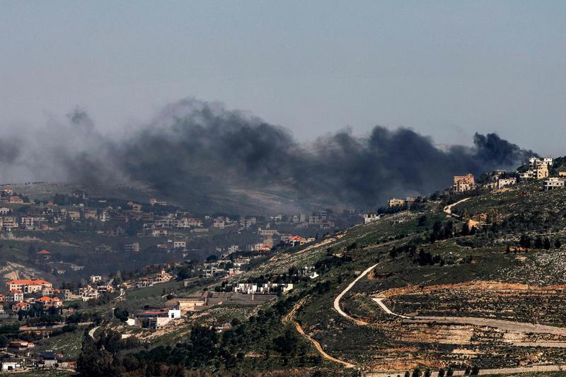 这是3月18日在以色列北部与黎巴嫩边境地带拍摄的以军袭击后冒出的浓烟。