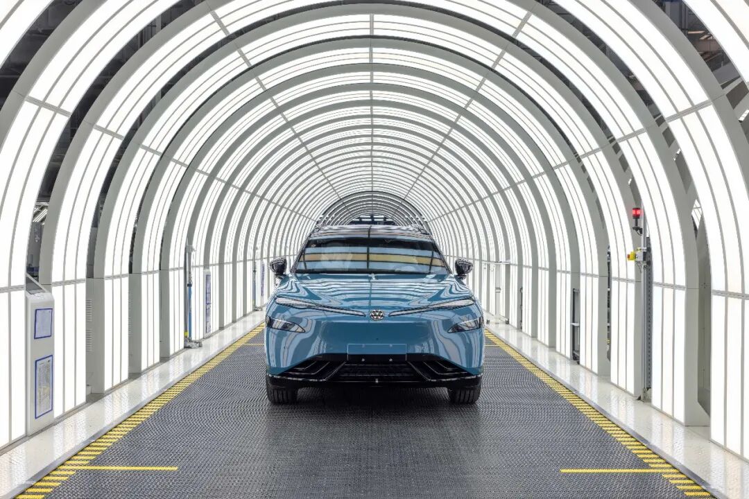 3月13日,大众汽车与小鹏汽车首款联合开发车型——“与众08”在合肥正式量产下线。(企业供图)