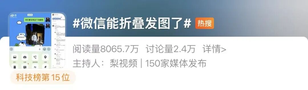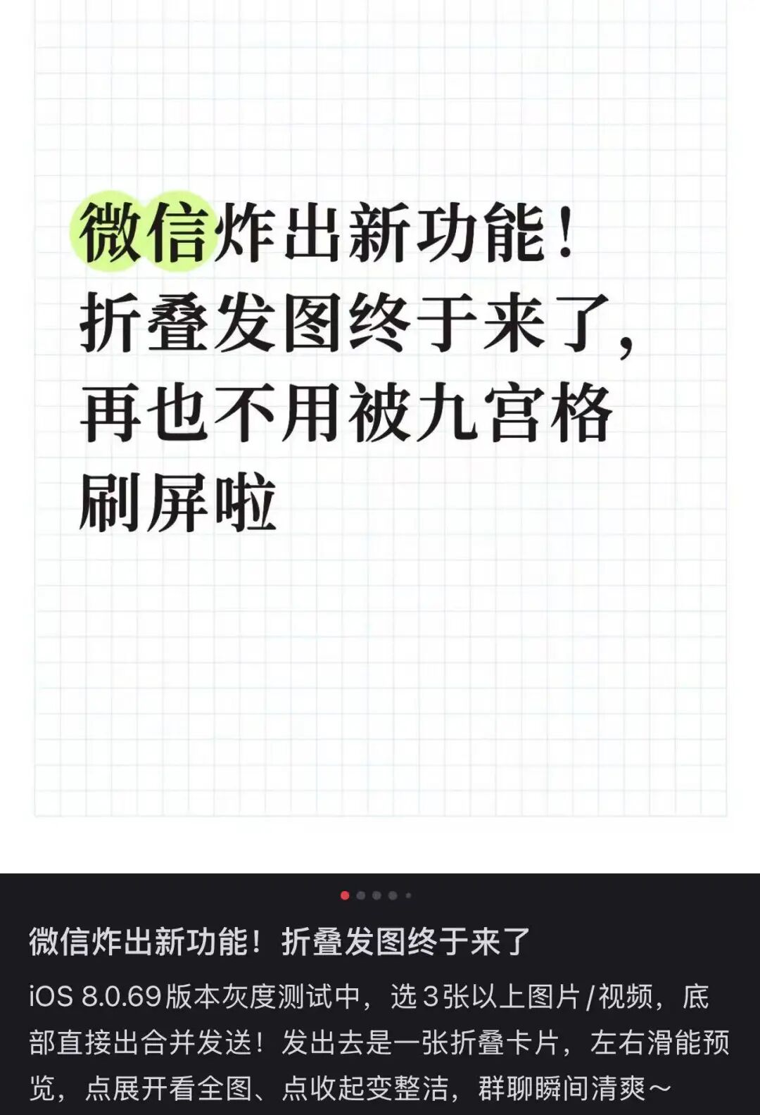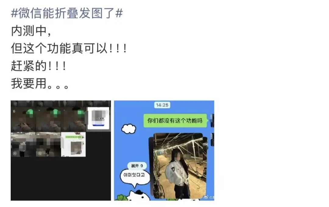 3月17日消息,据用户分享,微信正灰度测试“折叠发图”新功能,三张以上图片可以合并展示。