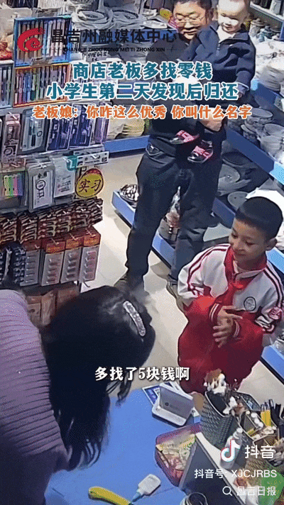 老板得知孩子是专门来退还多找的5元钱时
