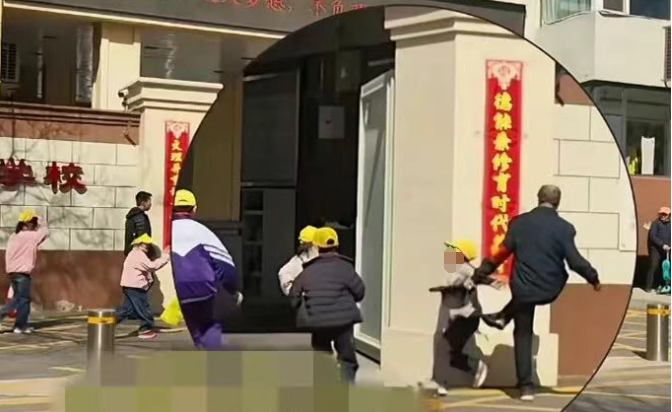 近日,网友发视频称,在太原市第三实验小学校门口,一名小学生在跑入校门时疑似被保安踢到,后撞到另一位学生。视频发布者配文“暴躁的保安遇到调皮的小学生”,并称“实拍校门口一幕,没有那一脚他们或许不会摔倒”。