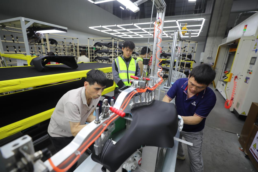 记者在生产现场了解到,天津召远汽车开工几个月来,产能稳定爬坡。3月份,企业的汽车内饰产品日产能达到约1100套,今年将供应包括小米、理想等新能源汽车品牌在内的5款热门汽车产品。