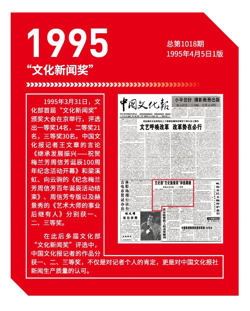 在此后多届文化部“文化新闻奖”评选中,中国文化报记者的作品分获一、二、三等奖,不仅是对记者个人的肯定,更是对中国文化报社新闻生产质量的认可。