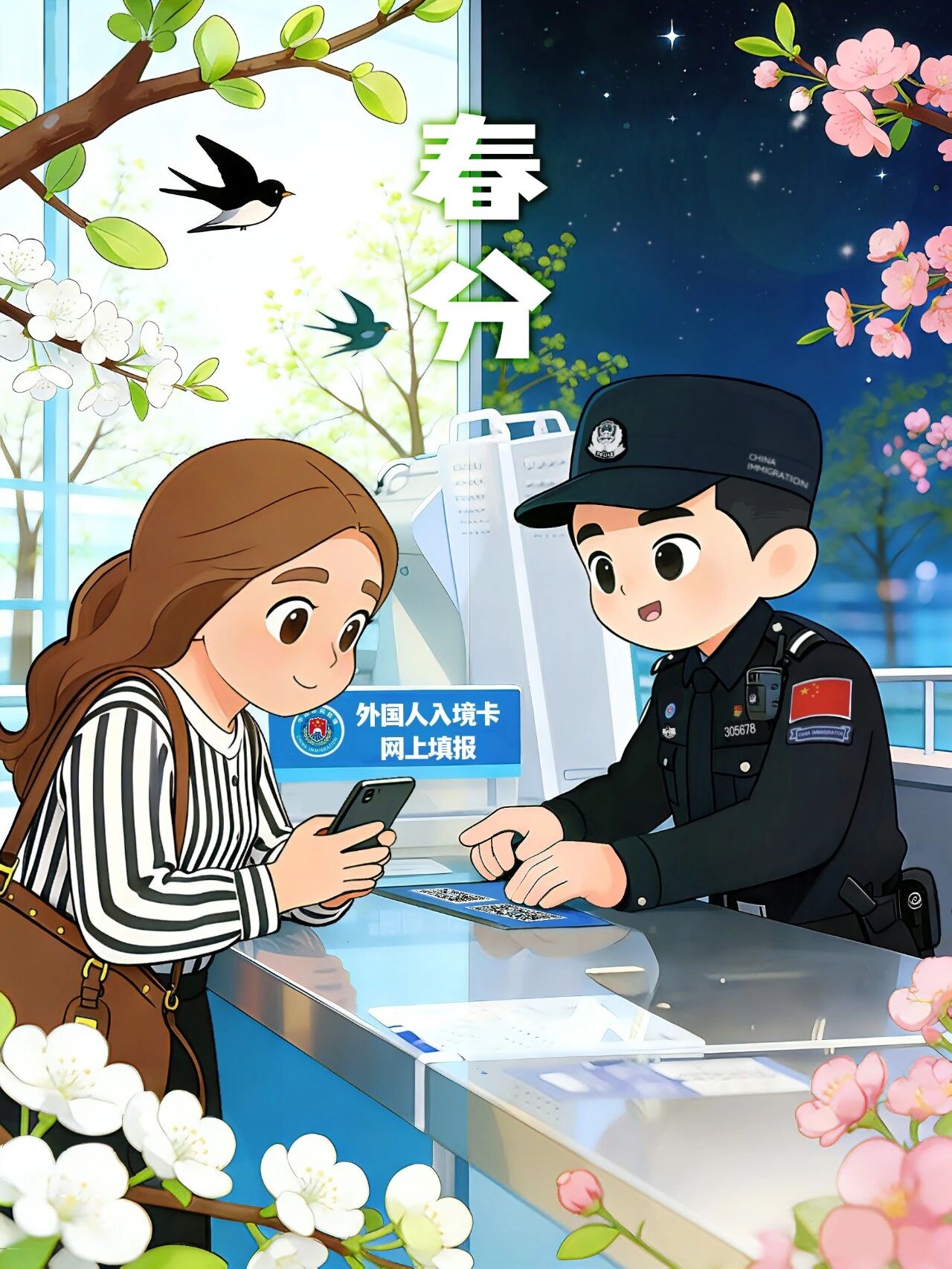 (漫画:北京边检总站 杨志恒 刘瑞琪、天津边检总站 陈天睿 孙哲、河北边检总站 李璐 王小语、浙江边检总站 方聿、厦门边检总站 林媛 陈颖维、深圳边检总站 彭敏菱、西藏边检总站 高琪伍)