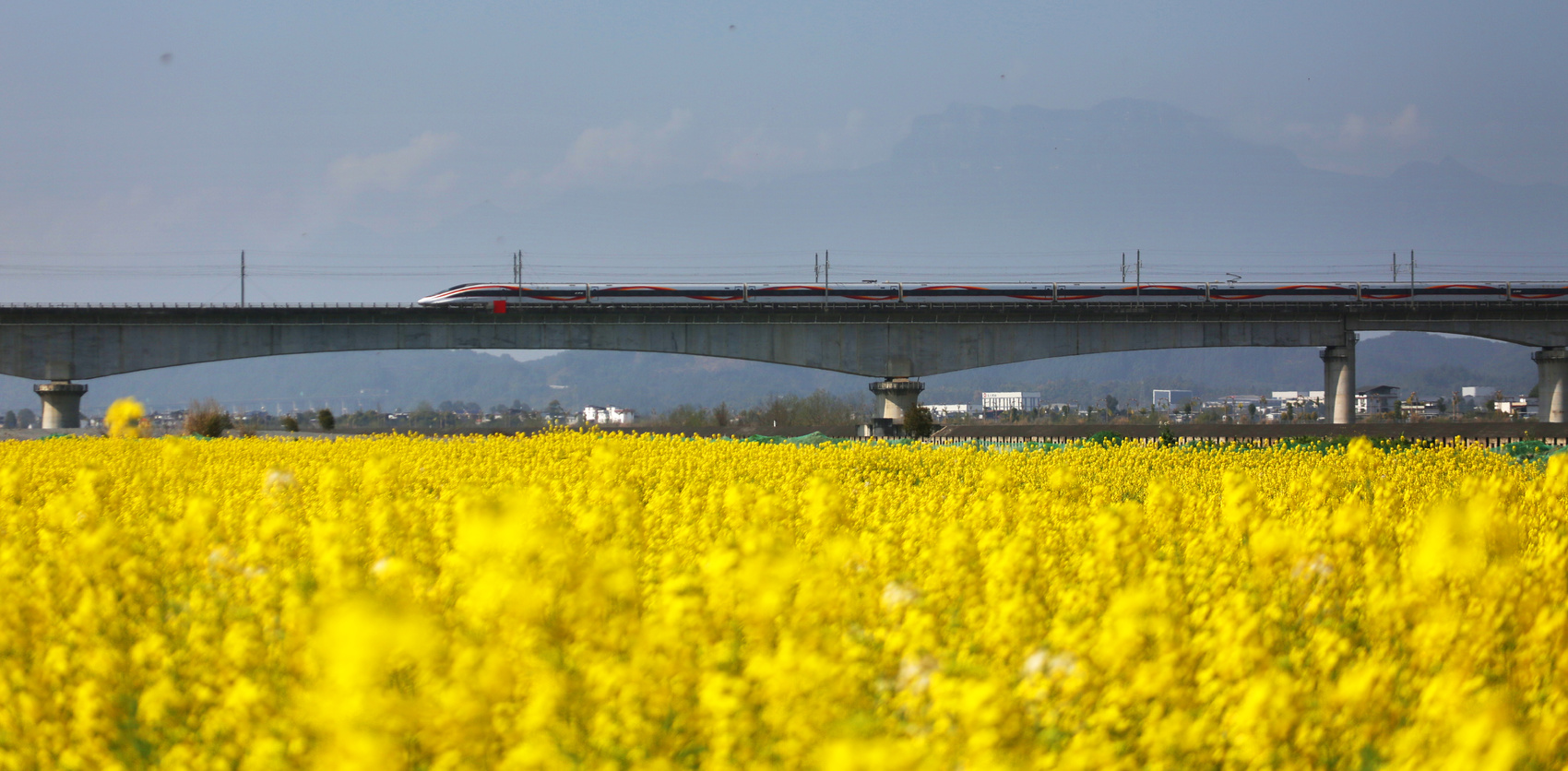 摄于成贵高铁乐山高新区段,背景远方是峨眉山