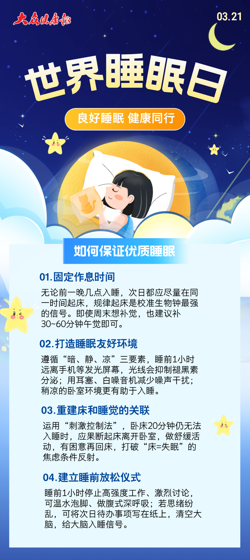 职场人群:守住三大底线——午休不超过1小时、睡前1小时不碰工作、周末与工作日起床时间相差不超过2小时,缓解压力和作息紊乱带来的睡眠问题。