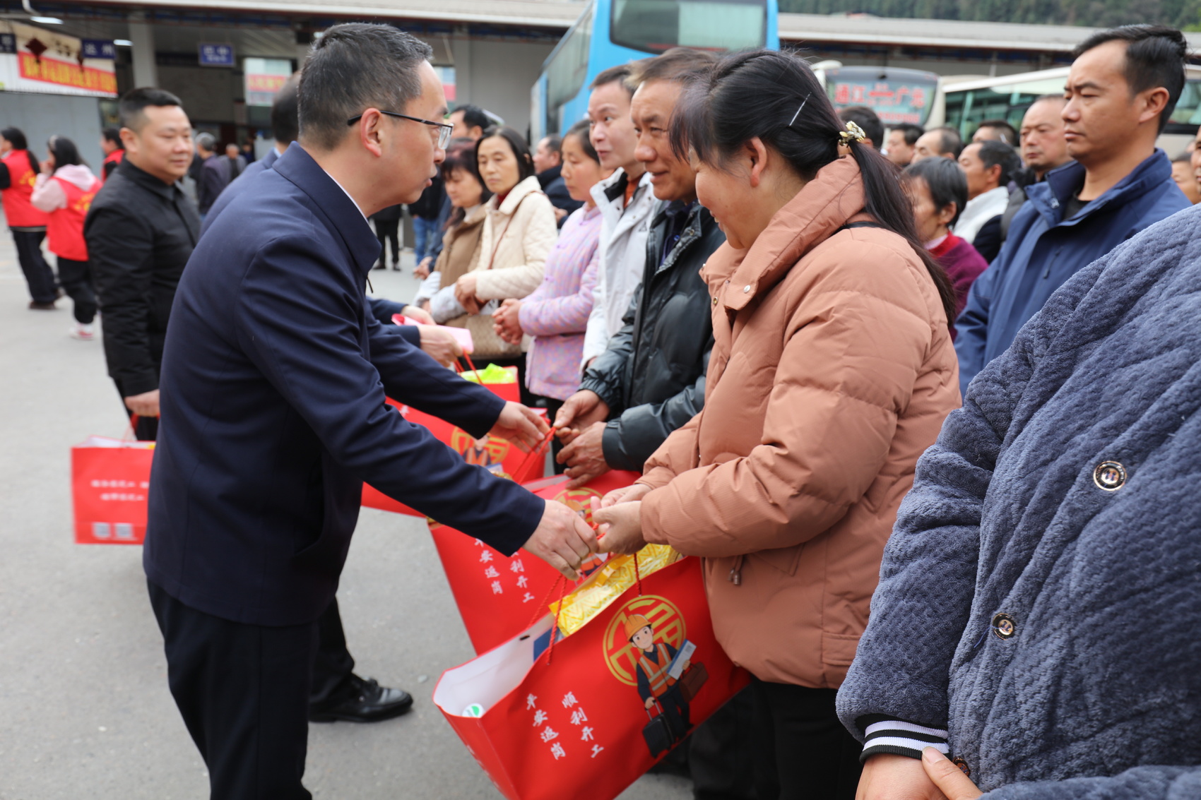 活动现场,多辆发往重庆、上海、成都等地的返岗专车整装待发,外出务工人员在工作人员的有序引导下依次排队登车。为让务工人员出行更舒心,现场还为外出务工人员送上了装有惠民政策清单、牛奶、面包、毛巾等物资的爱心礼包。“今天坐上‘返岗就业’专车,让我感到很暖心。”返岗农民工胡岩松高兴地说。返岗农民工王瑞也深有感触:“有了专车接送,从家到务工地点方便又快捷,路上还有安全保障,让我们安心、舒心。”