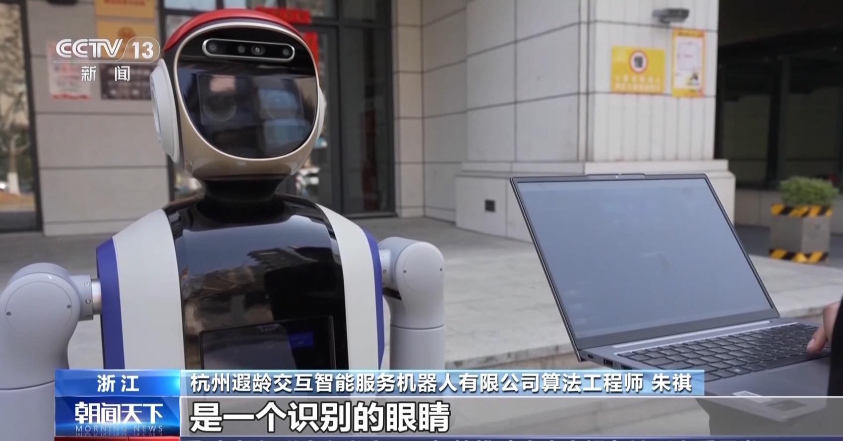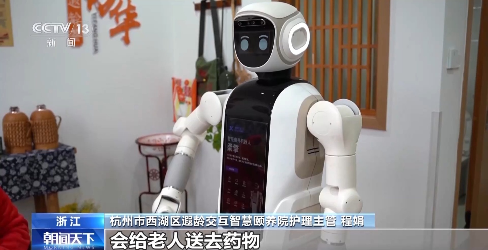 杭州市西湖区遐龄交互智慧颐养院护理主管 程娟:非常得力的一个助手。每天它会跟着我们一起巡视,我们这边设置好程序,会给老人送去药物,提高了护理效率。