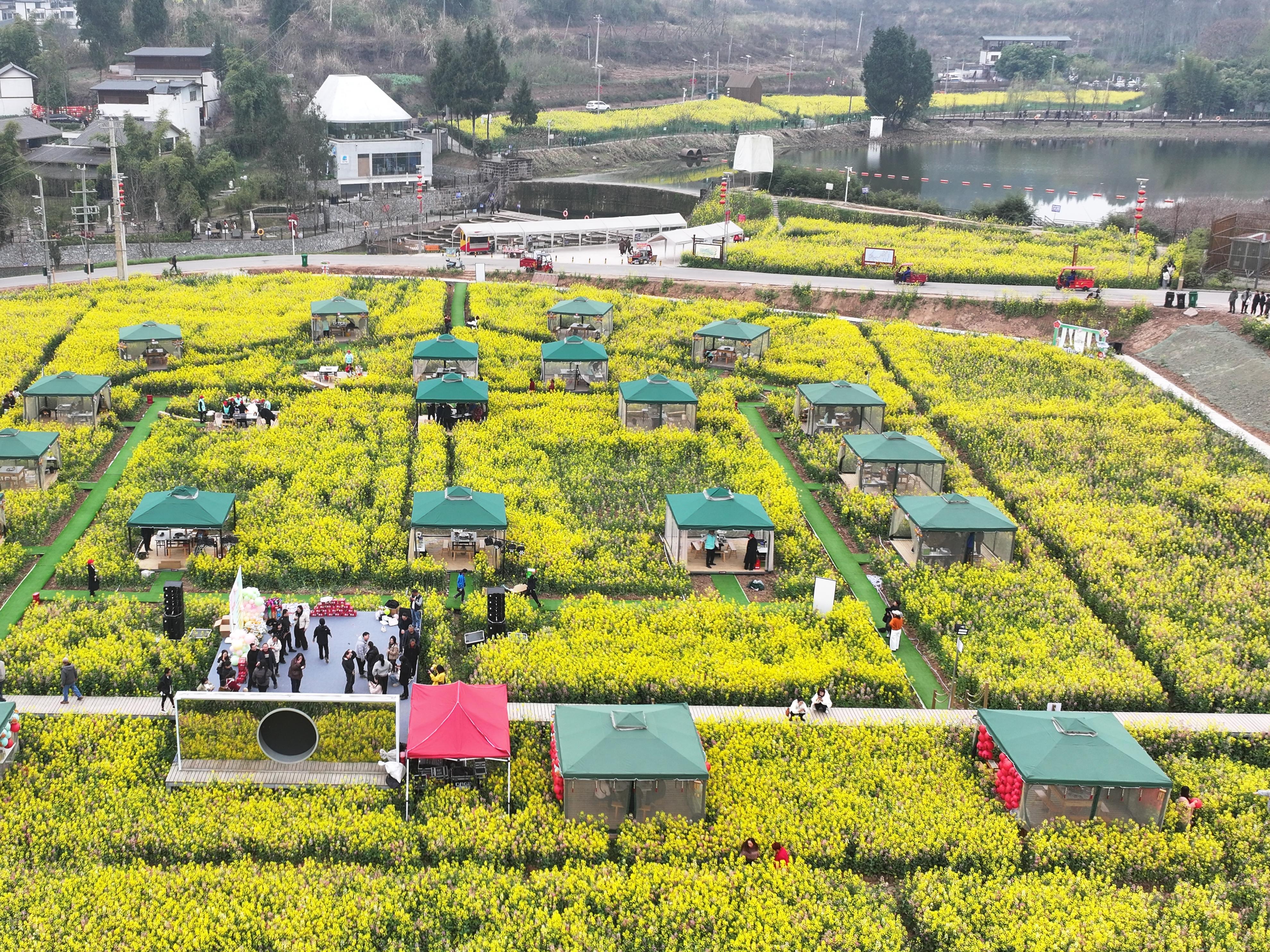 “千亩油菜花海已连续3年举办油菜花节,创新策划沉浸式、体验式的主题活动,吸引川陕甘渝等地游客前来踏青赏花。同时,我们与广元一家餐饮企业合作,在花田搭设帐篷,经营火锅和烤肉。”东山村党支部书记李海霞说,“我们收取餐饮企业营业额的20%作为村集体经济收入。”