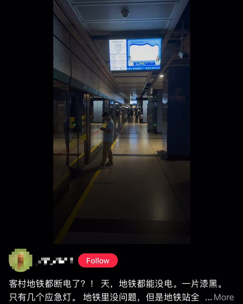 3月19日晚,社交媒体有视频显示,广州地铁八号线客村站照明失常,站台仅余零星灯光,乘客如同“秉烛夜游”。视频中,列车运行正常,电视和广播系统亦无异样,乘客虽然不明就里,但仍然低头淡定刷手机,或是好奇拍摄记录,闲庭信步,现场秩序井然。