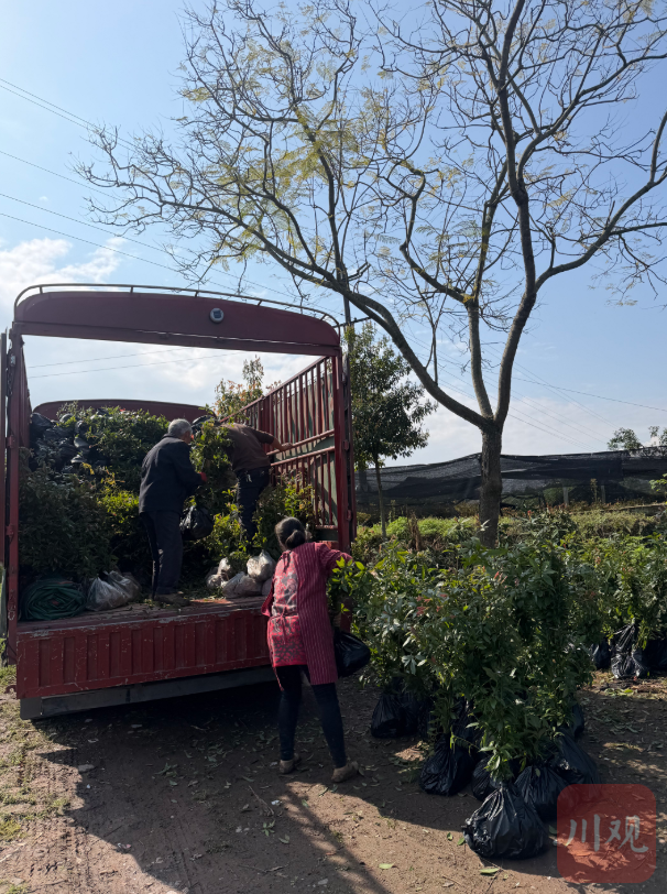 3月19日,数千株峨眉山桢楠种苗正在乐山金树源金丝楠种植有限公司苗木基地装车待发。