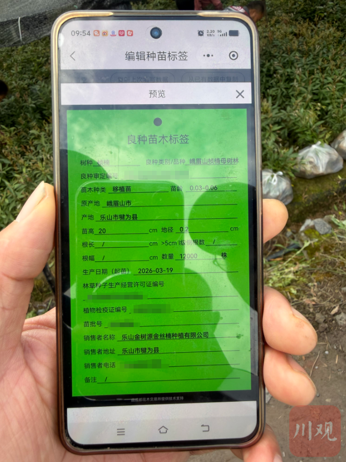 有政策、有需求,在四川省林草种苗站指导下,首张电子化种苗标签很快在乐山生成发出。3月9日至今,乐山已发出6张电子化标签,这张“数字身份证”正在快速推广。