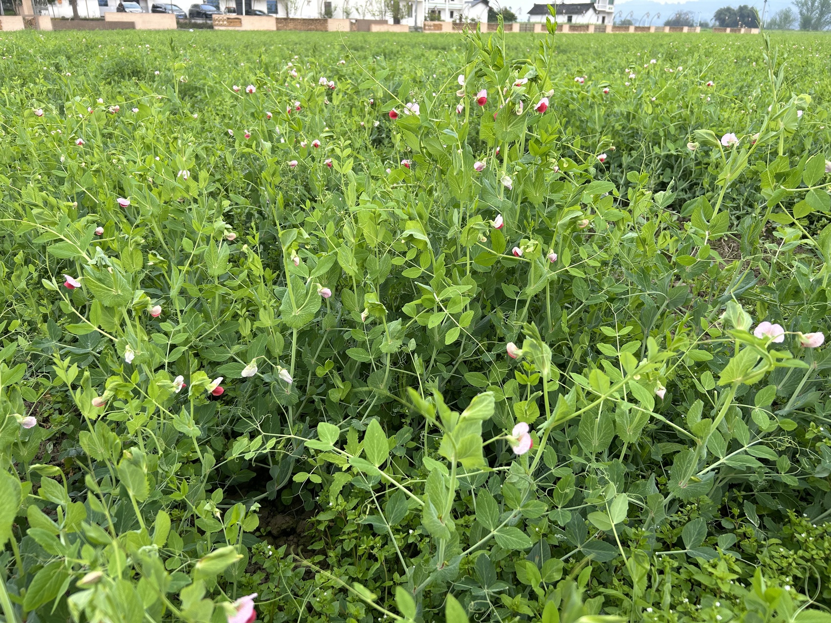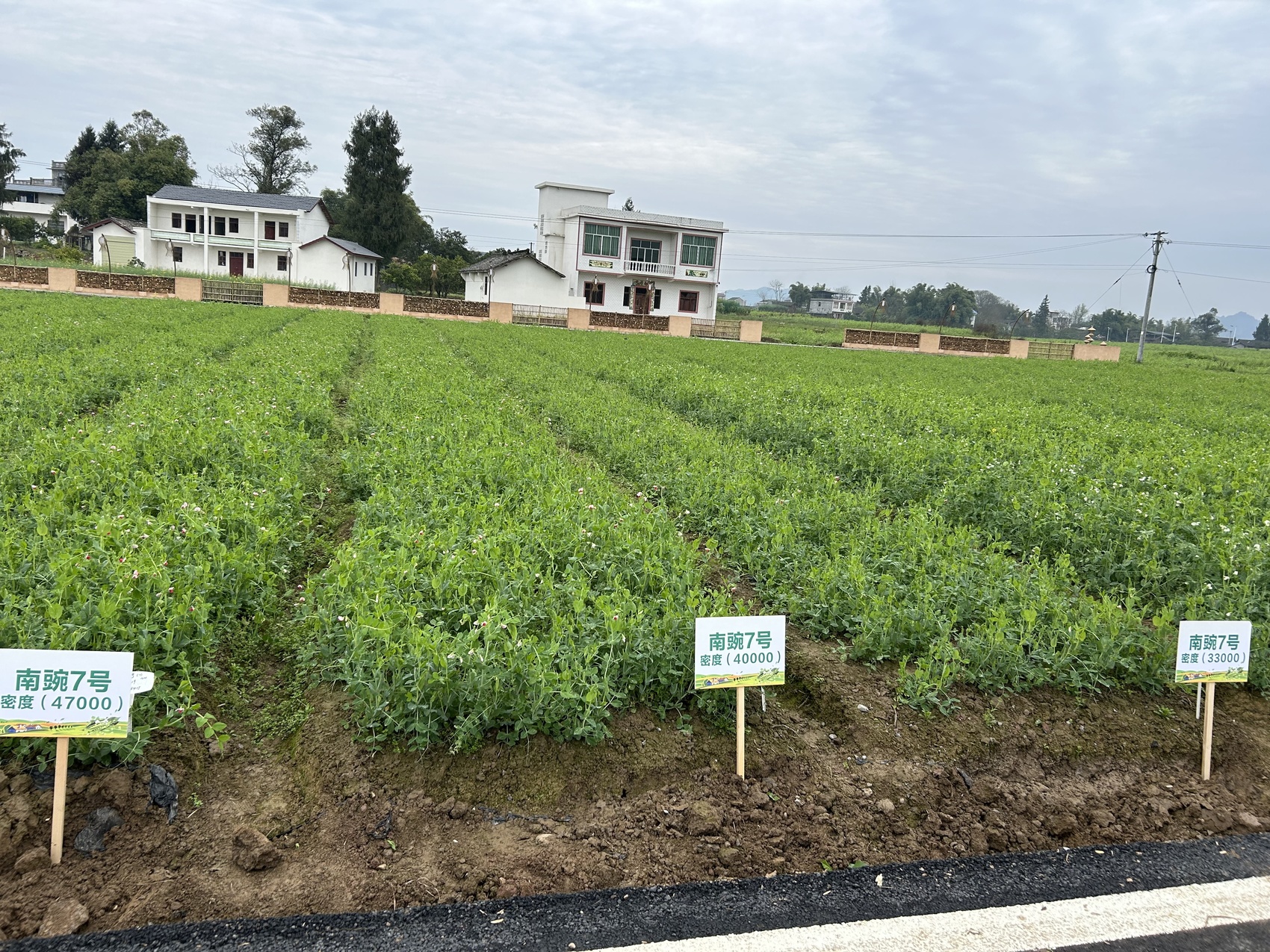 同一豌豆尖品种在田间不同密度的对照实验。