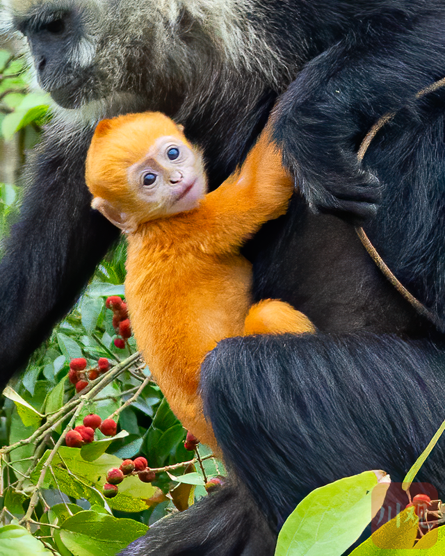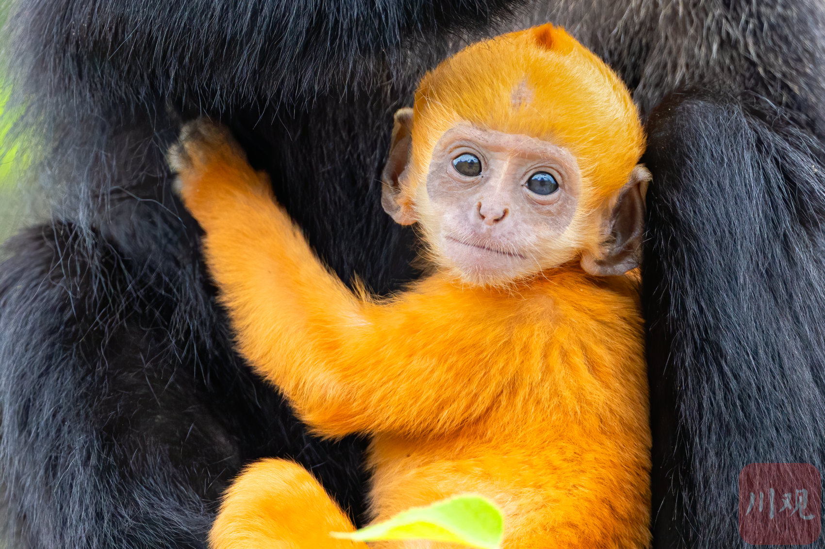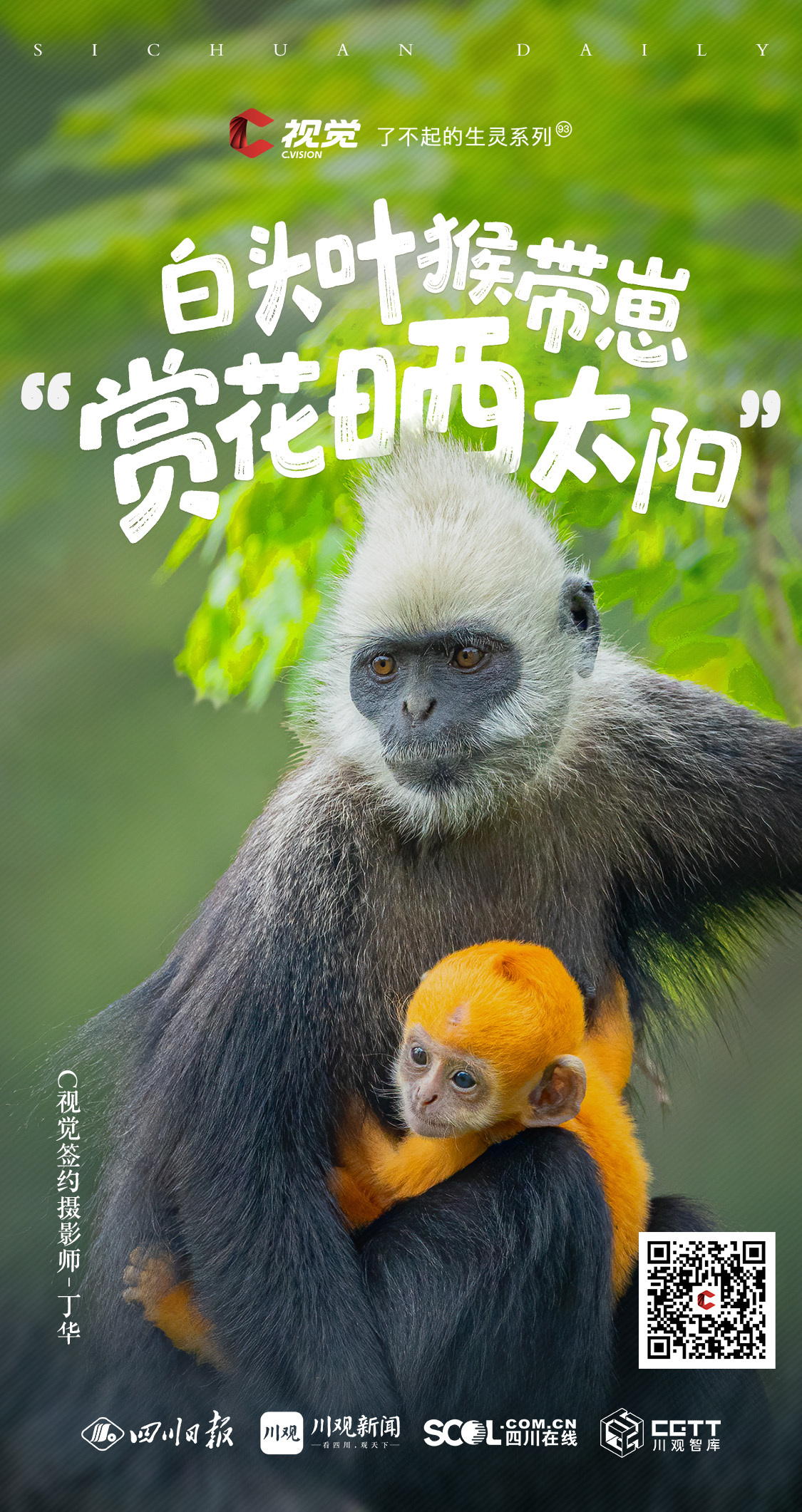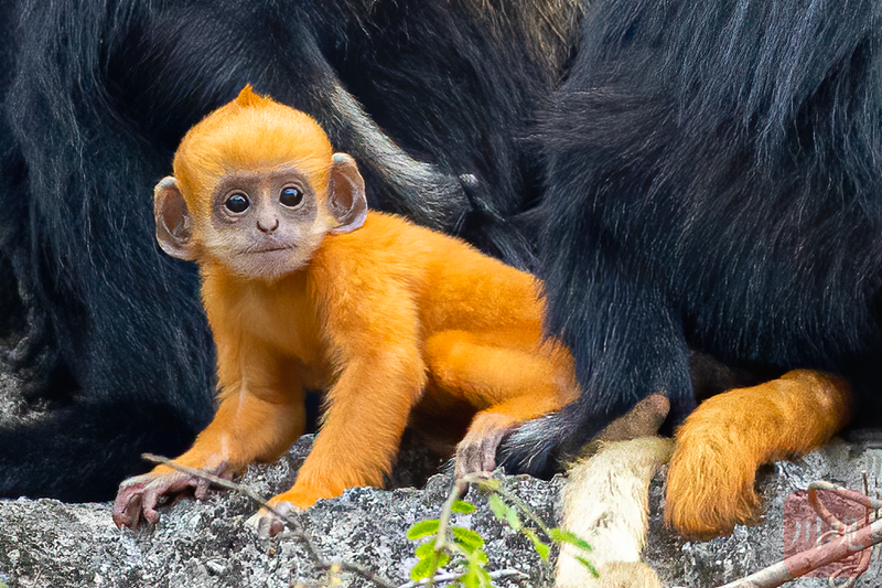 叶猴白头,崽娃黄发,暖洋洋的太阳底下,盛开两朵生命之花。